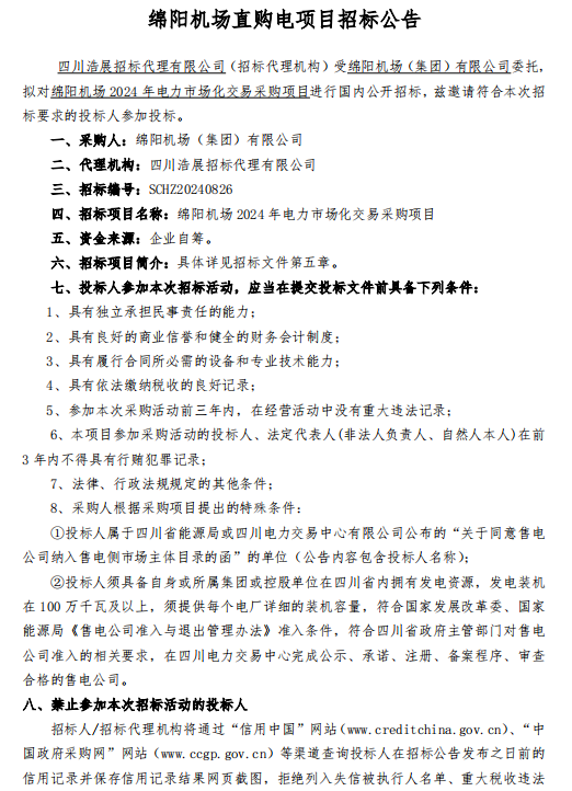 綿陽機場直購電項目招標(biāo)公告